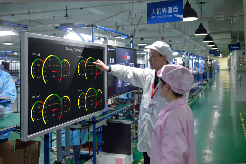 智慧工廠建設(shè),軟硬一體才能讓智能制造系統(tǒng)發(fā)揮其最大的效能。在軟件系統(tǒng)建設(shè)的同時,步科發(fā)揮其自動化廠商優(yōu)勢,同步進行了硬件平臺的構(gòu)建。為適應多品種、小批量生產(chǎn)模式下,現(xiàn)場高節(jié)拍、換線頻繁、物料種類多配送頻率高等特點,步科智慧工廠項目先后完成構(gòu)建了智慧終端、數(shù)據(jù)采集網(wǎng)關(guān)、電子看板、智能貨架、智能RGV小車、物料輸送滾筒線等硬件設(shè)施,并將硬件設(shè)備與軟件平臺進行無縫對接,實現(xiàn)軟件平臺與硬件設(shè)備的生產(chǎn)聯(lián)動,生產(chǎn)指令實時下發(fā)至設(shè)備,執(zhí)行數(shù)據(jù)實時上傳至軟件系統(tǒng),并實時透明化展示。通過軟硬一體化的智慧工廠解決方案,以提升生產(chǎn)現(xiàn)場的執(zhí)行效率和品質(zhì),降低整體成本。