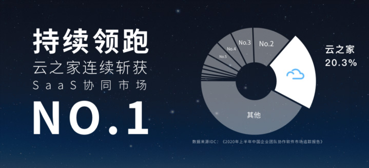 根據(jù)IDC近日發(fā)布的最新《2020年上半年中國(guó)企業(yè)團(tuán)隊(duì)協(xié)作軟件市場(chǎng)追蹤報(bào)告》顯示:上半年云之家以 20.3%的份額再次蟬聯(lián)SaaS企業(yè)團(tuán)隊(duì)協(xié)作市場(chǎng)第一名。據(jù)往年IDC數(shù)據(jù)顯示:云之家從2015年開(kāi)始,連續(xù)3年在中大企業(yè)移動(dòng)辦公市場(chǎng)占有率第一。從2018年至今,在SaaS企業(yè)團(tuán)隊(duì)協(xié)作市場(chǎng)持續(xù)第一。