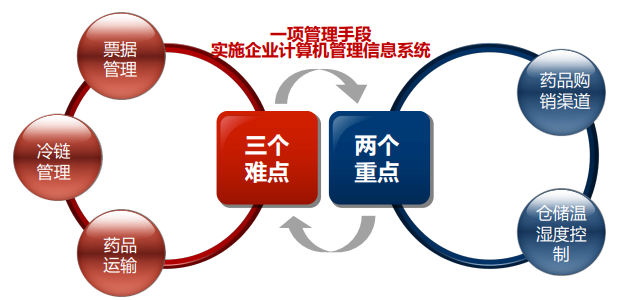 全球全面推進一項管理手段、強化兩個重點環(huán)節(jié)、突破三個難點問題 新版GSP吸收了供應鏈管理的觀念;增加了計算機信息化管理、倉儲溫濕度自動監(jiān)測、藥品冷 鏈管理等管理要求;引入了質(zhì)量風險管理、體系內(nèi)審、設備驗證等新的管理理念和方法,對 于藥品經(jīng)營流通企業(yè)的信息化管理、冷鏈管理和人員要求等軟硬件方面都提出了許多新規(guī)定, 原有規(guī)定也做了許多調(diào)整。